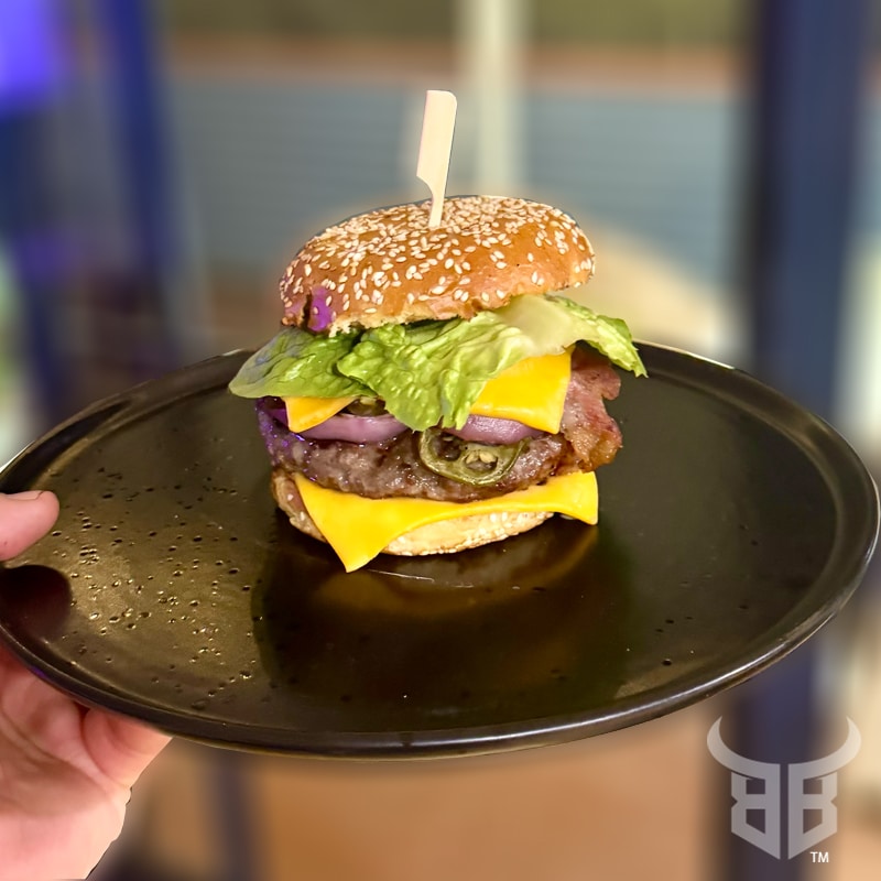 These award winning 150g burgers are made with grass fed beef, shallots, red capsicum and our secret spice blend. Delicious served with our home made bacon, burger cheese, pickles or jalapenos and a burger sauce on your favourite bun – Life does not get much better!
